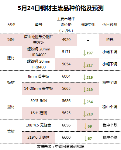 外匯局副局長參加論壇時(shí)表示,全球流動性保持充裕,通脹預(yù)期正在明顯抬升。從這個(gè)層面來看,大宗商品上漲仍未到頂,后期仍有上漲空間。 國家發(fā)展改革委等五部門聯(lián)合召開會議,約談了鐵礦石、鋼材、銅、鋁等行業(yè)具有較強(qiáng)市場影響力的重點(diǎn)企業(yè),會議明確,有關(guān)監(jiān)管部門將密切跟蹤監(jiān)測大宗商品價(jià)格走勢,加強(qiáng)大宗商品期貨和現(xiàn)貨市場聯(lián)動監(jiān)管,對違法行為“零容忍”,持續(xù)加大執(zhí)法檢查力度。 國家對大宗商品價(jià)格監(jiān)管力度加強(qiáng)。 鐵礦石、鋼材價(jià)格持續(xù)被打壓。 自2021年5月24日起,沙鋼廢鋼價(jià)格下調(diào)70元/噸,具體廢鋼價(jià)格以2021-F18價(jià)格為準(zhǔn)。 原料端走低。 進(jìn)一步降低成本支撐。 廣東北江、湖南湘江、江西贛江、福建富屯溪等72條河流發(fā)生超警以上洪水,2條河流發(fā)生超保洪水。預(yù)計(jì)未來10天,江淮南部、江南大部、華南北部、西南東部等地強(qiáng)降雨過程頻繁,防汛形勢嚴(yán)峻。 南方降雨量持續(xù)在高位。 鋼材需求端支撐減弱。 24日,期卷期螺延續(xù)下跌,期螺跌破五千,直逼支撐點(diǎn)。現(xiàn)貨市場,唐山地區(qū)普方坯持穩(wěn),報(bào)價(jià)4920元/噸,各主流品種累加周末下跌幅度,形成暴跌。市場整體心態(tài)不好,貿(mào)易商多降價(jià)出售,終端、次終端則按需采購,但下午隨著期鋼稍稍有所回轉(zhuǎn),詢價(jià)增多,成交量有所起色,預(yù)計(jì)今日鋼價(jià)跌幅將有所收窄。 最近總有人問會跌到2008年的價(jià)格么?我的答案總是否定的,其中的關(guān)鍵點(diǎn)在于,08年的暴跌是金融危機(jī)引起的,是被動的,而今年的大跌則是主動的,是受政策調(diào)控的。政策調(diào)控的核心是回歸常態(tài)化,而不是引起恐慌。另外,鋼廠利潤被壓制到一定程度難免會引起鋼廠的一些挺價(jià)行動來支撐鋼價(jià)。