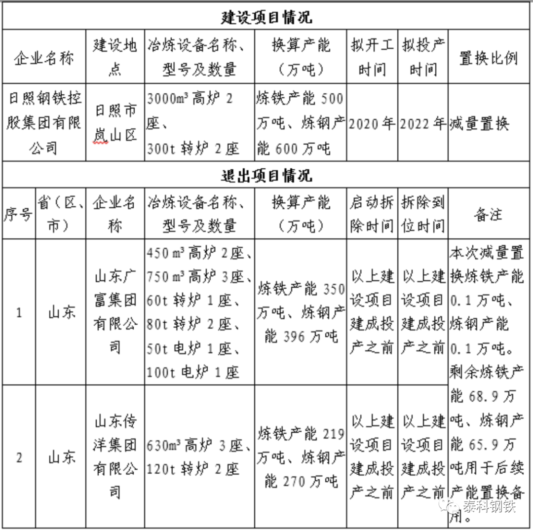 2021年第一個鋼鐵產能置換方案公告發布!涉及日照鋼鐵、廣富、傳洋等6家鋼企!鐵鋼產能1620萬噸!