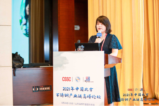 6.中國(guó)特鋼企業(yè)協(xié)會(huì)不銹鋼分會(huì)秘書長(zhǎng)劉艷平帶來《不銹鋼供需及前景展望》的演講。