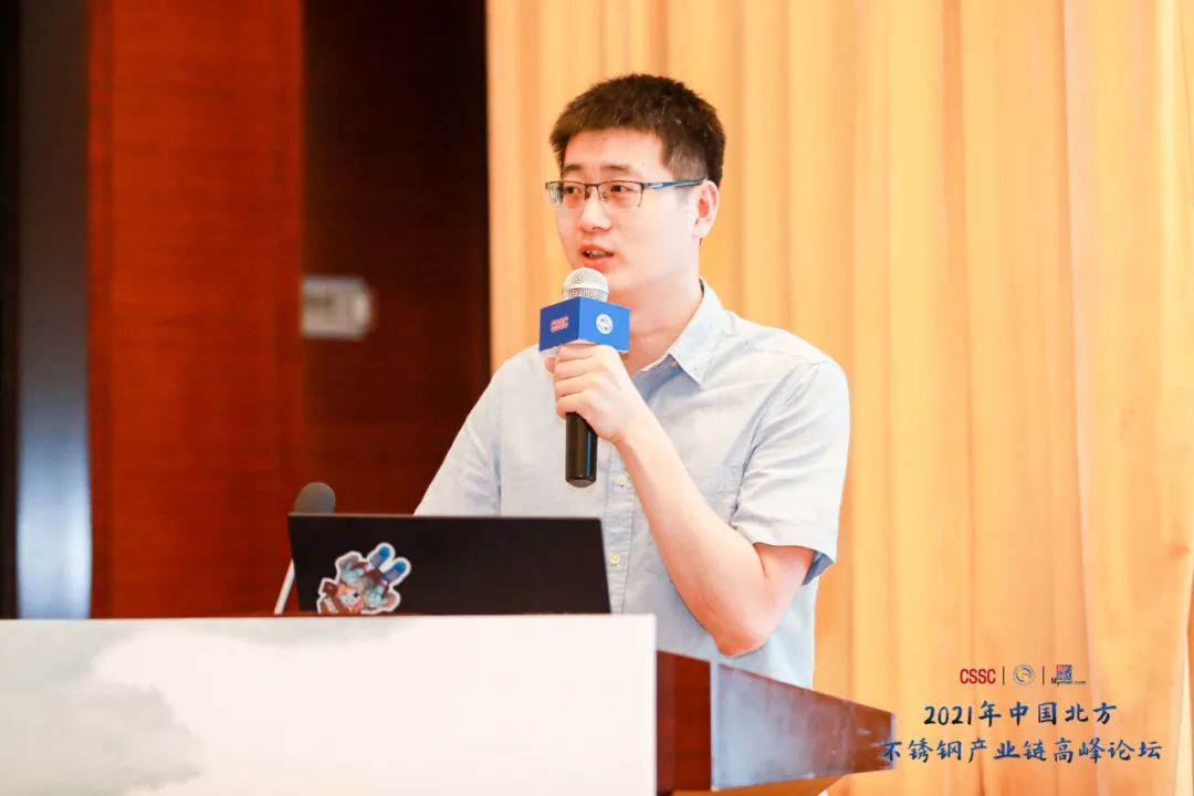3.山東隆眾信息技術(shù)有限公司 成品油產(chǎn)業(yè)鏈高級(jí)分析師丁旭作了《山東煉化行業(yè)與不銹鋼需求》的演講。