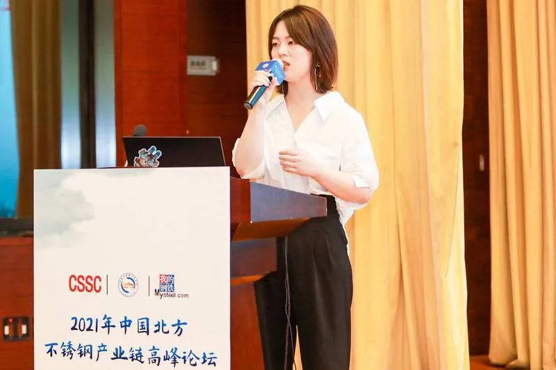 7.Mysteel指數(shù)研發(fā)部 指數(shù)研究員楊丹虹女士帶來《Mysteel價(jià)格指數(shù)介紹暨不銹鋼價(jià)格指數(shù)方法論》的演講。