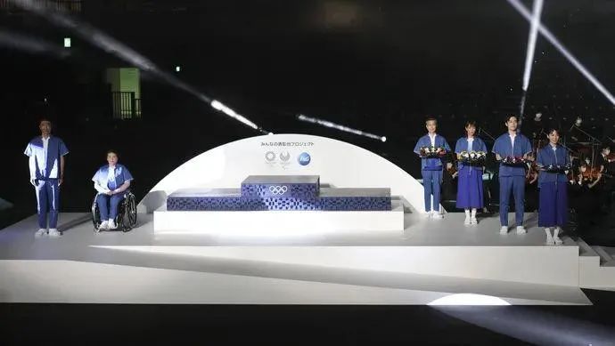 奧組委在日本各地的大型零售商和學校收集了近 40萬個洗衣粉瓶。這些家用塑料被回收后制成細絲,采用3D打印制成98個奧運領獎臺。據稱,這是奧運會和殘奧會歷史上首次由公眾參與收集廢舊塑料制作領獎臺。