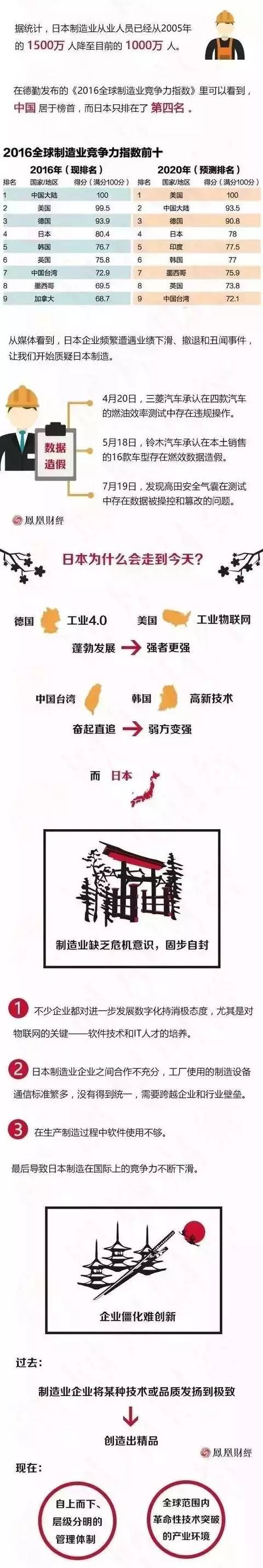 然而“盛極而衰,否極泰來”似乎是自然界里的一種常規走勢。由得勒發布的《2016全球制造業競爭力指數前十》榜單,我們發現了中國大陸一躍而上首位(自強不息的努力得到了回報...),日本卻悄然跌到第四位。