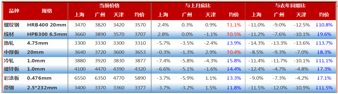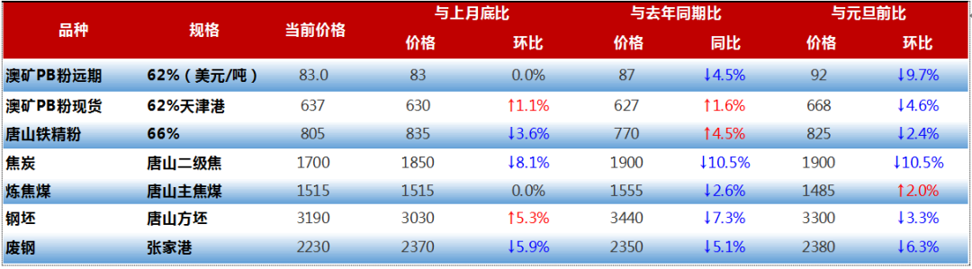 圖表3鋼材和原材料主要品種期現(xiàn)貨價格變化情況