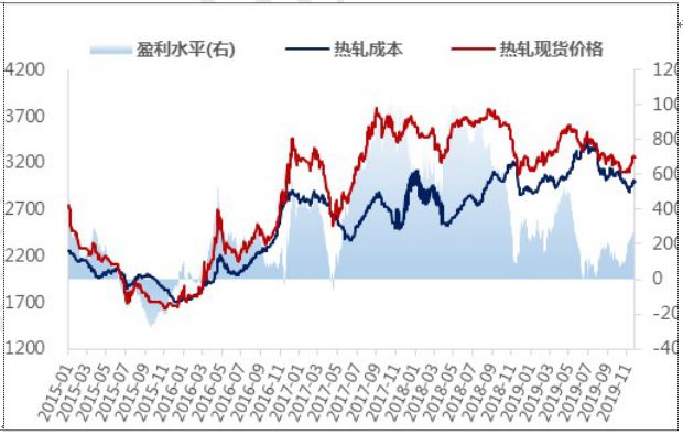 圖表4 根據(jù)成本模型測(cè)算的鋼廠熱軋板卷盈利情況