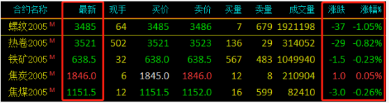 期貨今日繼續走弱,期螺下跌37收報3485,下方支撐3450,日線圖MACD指標線死叉向下,綠色負向動能增加,短時有繼續下行的空間。熱卷日內下跌29收報3521,目前位于箱體震蕩的下邊界,3500支撐位繼續有效,短時偏空,是否下破3500有待驗證。