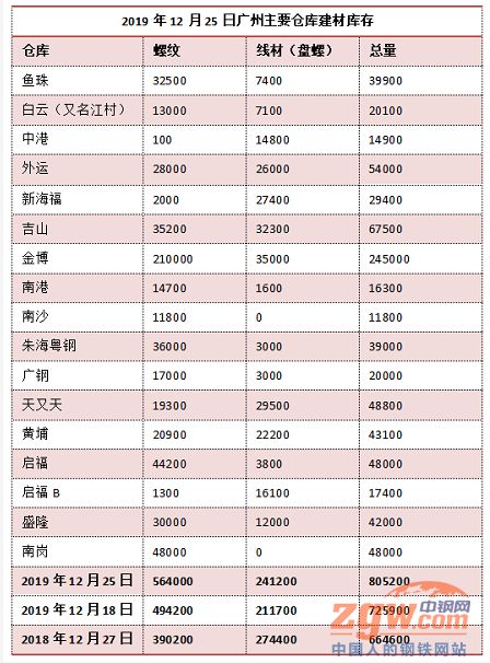隨著北材大量到貨,截止12月25日,廣州17家主流建材庫存本周達80.52萬噸,環比上周增加9.93萬噸,較去年同期增加14.06萬噸。其中,17家主流倉庫螺紋鋼56.4萬噸,增加6.98萬噸,較去年同期增加17.38萬噸;線材盤螺24.12萬噸,增加2.95萬噸,較去年同期減少3.32萬噸。目前建材仍處于累庫中,廣州等華南市場跌幅將大于華北地區,區域價格分化繼續。