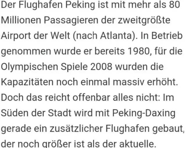 德國《圖片報》列舉說“揚州新機場從建造到啟用只用了兩年!北京首都機場3號航站樓——世界上第二大的航站樓,僅僅用了短短的3年零9個月建成,客流量可是7800萬。”
