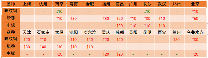螺紋鋼24個市場中,9個市場上漲10-30,2個市場下跌10,20mm HRB400E平均價格3650元/噸,較上個交易日上調6元/噸;