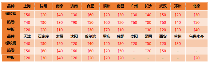 繼周六日鋼價(jià)上漲后,今日價(jià)格繼續(xù)上調(diào)。疊加周六日漲幅,最高上漲90。從成交來(lái)看,建材整體成交好于板材。