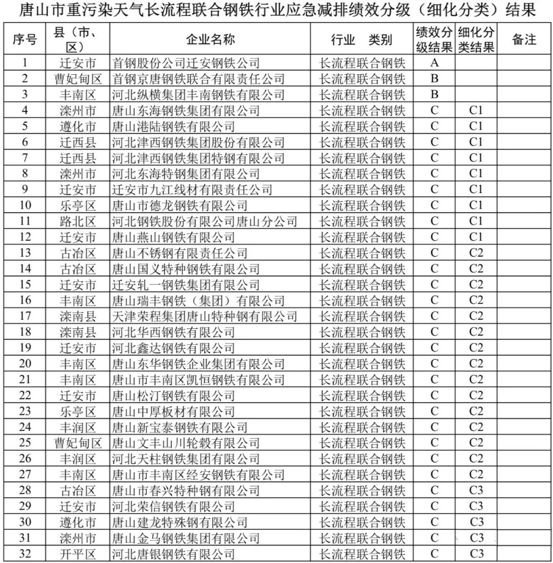 港陸鋼鐵、津西鋼鐵(東、西兩廠區)、文豐鋼鐵、唐鋼中厚板、德龍鋼鐵燒結、球團、高爐減排比例不低于20%。
