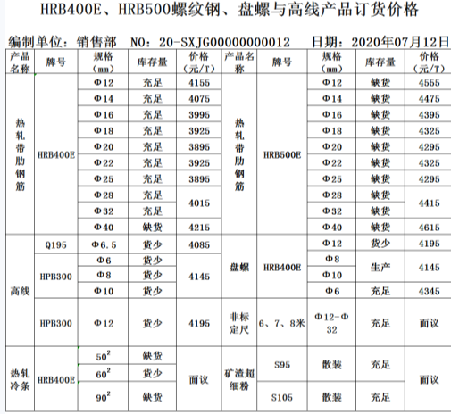 2020年07月12日 最新 鋼廠調(diào)價(jià) 信息!下周鋼價(jià)這樣走!