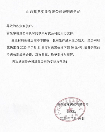 焦炭價格在提漲6輪之后接連迎來鋼廠壓價,目前已經(jīng)開啟第三輪提降。山西建龍決定自7月21日零時起對焦炭采購價格下調(diào)50元/噸,調(diào)整過后準一級水熄焦(水分≤7%、灰分≤13%、硫≤0.7%)采購價為1650元/噸,準一級干熄焦(灰分≤12.5-13%、硫≤0.7%)采購價為1850元/噸。從市場反饋來看,目前焦化企業(yè)開工維持較高水平,鋼廠按需采購,壓價意愿強烈,后市價格上行壓力較大。