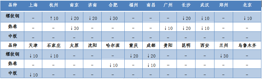 現(xiàn)貨方面,螺紋鋼24個市場中1個市場上漲10,11個市場下跌10-30,均價下調(diào)8;熱卷24個市場中8個市場下跌10-30,均價下調(diào)4;中板24個市場中1個市場下跌10,均價下調(diào)1。今日市場成交一般,建材報價弱于板材,跌幅有限。