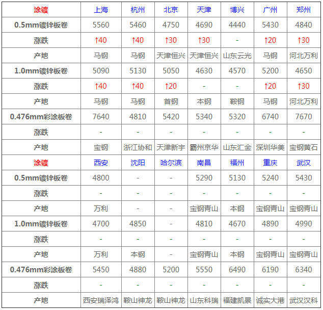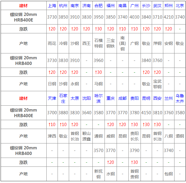 10月30日建材價(jià)格:以漲為主;