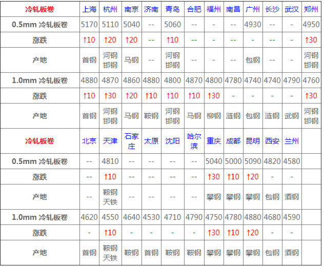 10月30日冷軋板卷價(jià)格:偏強(qiáng)盤整;