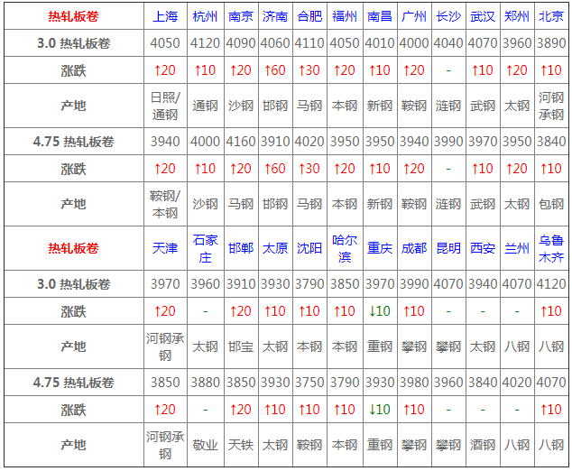 熱軋板卷:上漲