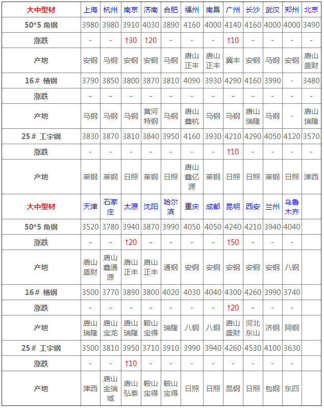 大成工字鋼上調(diào)10元/噸