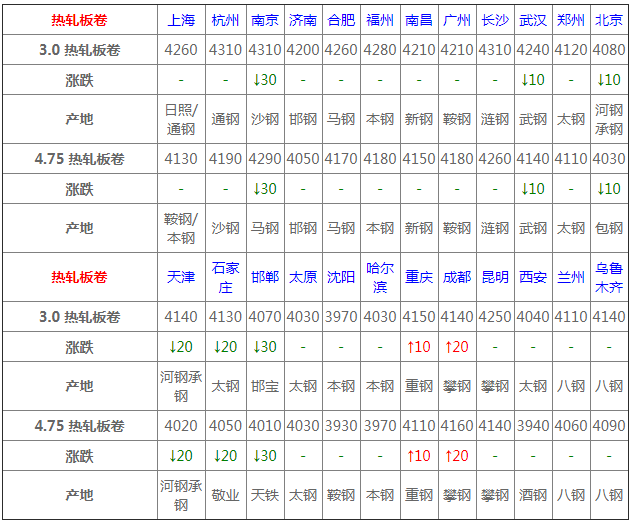 期卷持綠運行,但鋼廠成本居高,市場報價較混亂,低位資源在4080左右,高位資源4100左右,個別為刺激成交有暗降操作,然下游多持觀望態度,整體成交表現一般,商家心態較為謹慎,對于后期價格謹慎為主,預計明日熱軋價格或震蕩走弱運行。