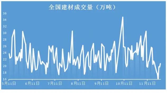 11月下旬以來(lái),建材成交量持續(xù)處于低位,均在20萬(wàn)噸以下。本周第一個(gè)交易日,盡管宏觀利好提振,但成交量回升的空間相對(duì)有限,僅20萬(wàn)噸水平,淡季效應(yīng)已逐步顯現(xiàn),本周降庫(kù)或進(jìn)一步放緩。