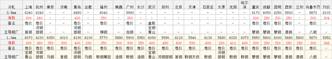 12月21日冷軋板卷價格:堅挺上漲200-600;