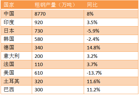 2、2020年11月全球粗鋼產量1.58億噸,同比增長6.6%