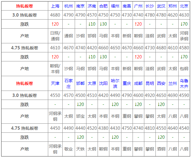 1月7日熱軋板卷價(jià)格:堅(jiān)挺;