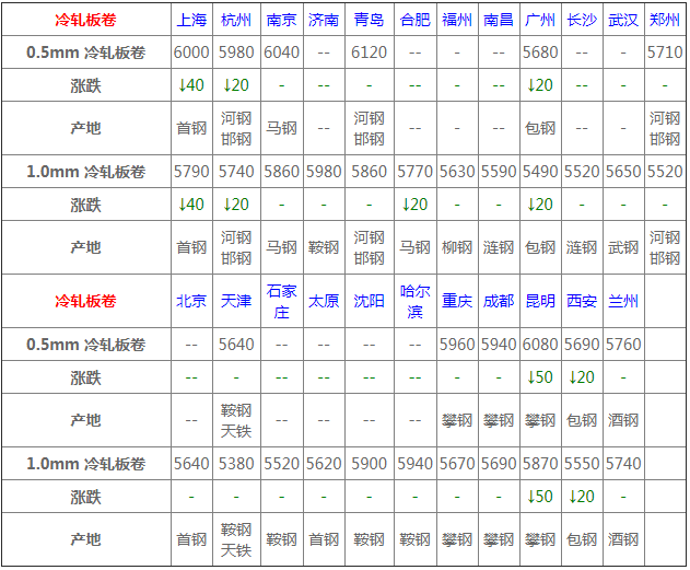 1月7日冷軋板卷價(jià)格:主穩(wěn);