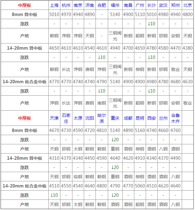 1月7日中厚板價(jià)格:穩(wěn)中整理;