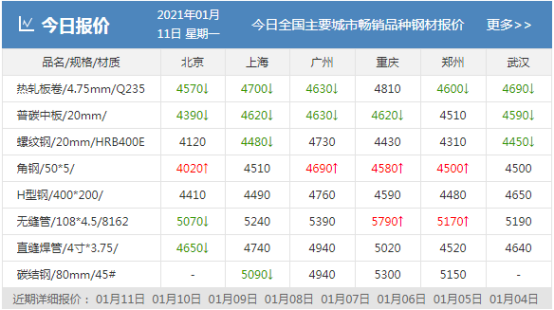 2021年1月11日鋼廠調(diào)價