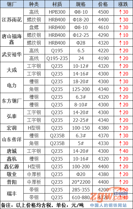 鑫杭槽鋼上調(diào)20元/噸