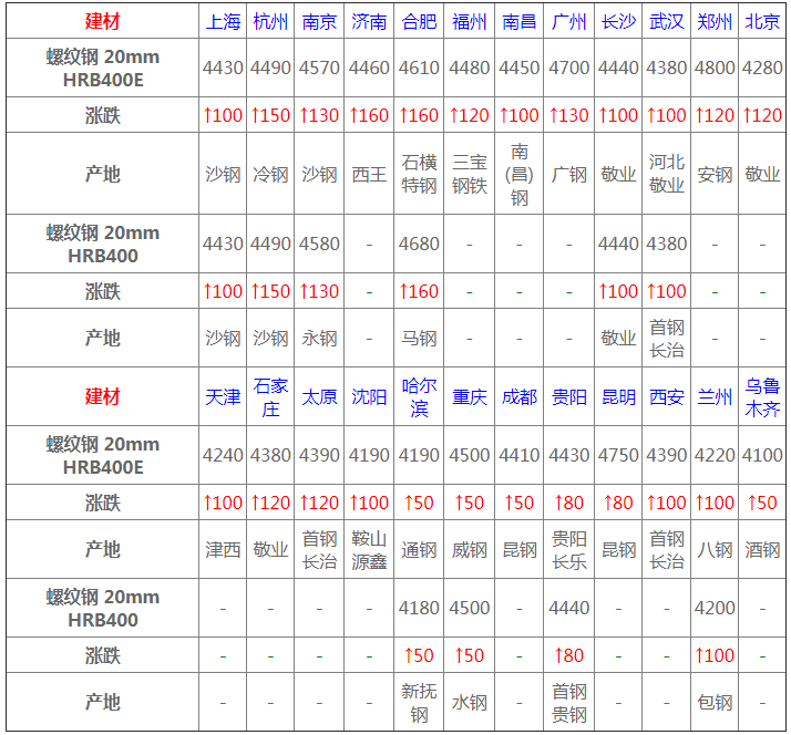 2月18日建材價格:大幅拉漲;