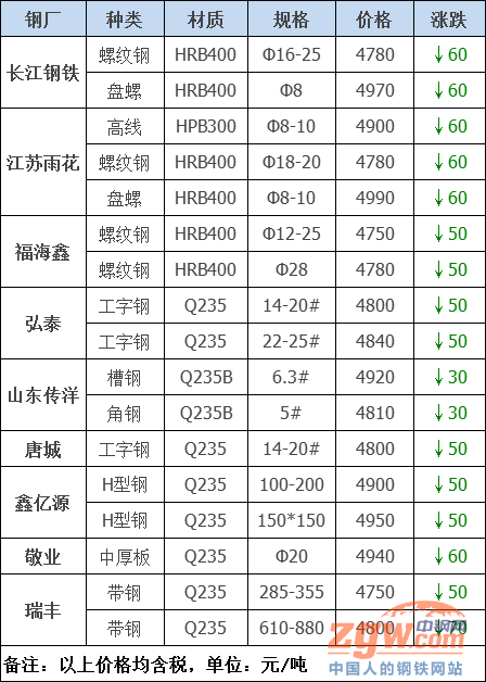 2021年3月5日鋼廠調(diào)價(jià)-調(diào)價(jià):跌70!20家鋼廠降價(jià)了!
