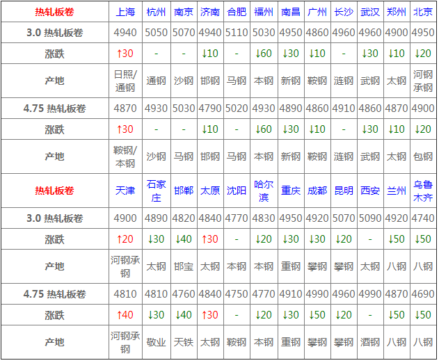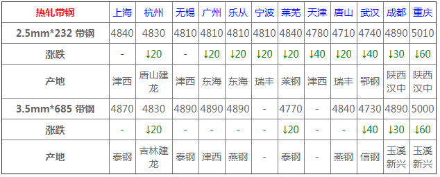 今全國帶鋼持續弱調,華北主導鋼廠穩中降30,唐山窄帶累降40,降后逐步有放量回漲20,漲后好轉部分出清日產,華東華南主流弱調;