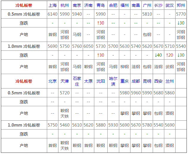 今全國冷軋市場漲跌穩(wěn)均現(xiàn),幅度10-120元/噸,行情波動較頻繁,市場成交多集中于低位,整體需求偏弱,主流操作謹(jǐn)慎多觀望;預(yù)計冷軋板卷價格震蕩運(yùn)行。