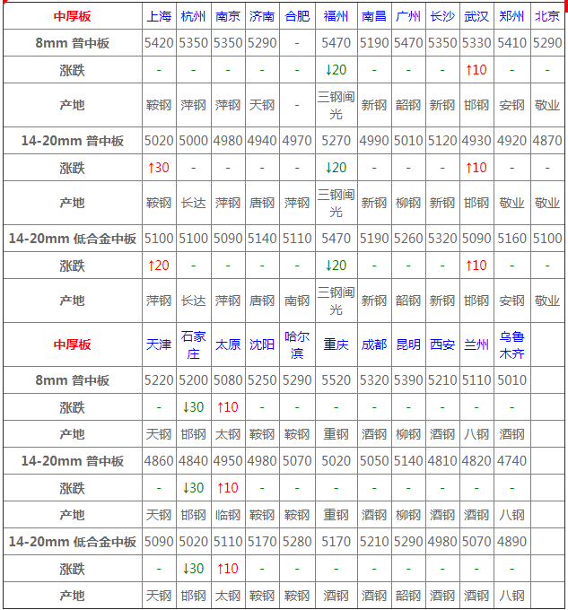 今全國中板穩(wěn)漲跌均現(xiàn),幅度10-50元/噸,行情波動頻繁,終端采購較為謹(jǐn)慎,整體成交未有改善,低位出貨為主;