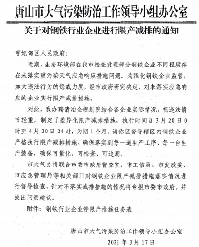 唐山限產(chǎn)再出手