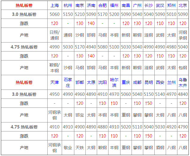 今全國熱軋市場堅挺運行,幅度10-50元,期卷震蕩走勢,現貨心態謹慎,隨行調整出貨,然高位成交受阻,整體交投一般;