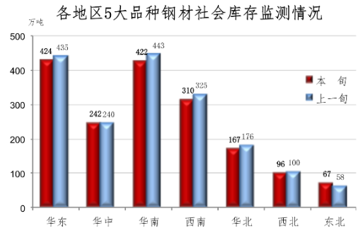 同時,分區域來看,華南市場降庫最快,環比下降21萬噸,降幅4.7%。華北市場減少9萬噸,下降5.1%。僅華中地區增加2萬噸,是全國七大區域中唯一出現正增長的市場。分品種來看,螺紋鋼總庫存壓力最大,庫存減量也最大,較上一旬下降20萬噸,降幅2%,冷軋板卷庫存環比略有增加,反映品種間存在差異,需求整體延續釋放,對鋼價仍有支撐。