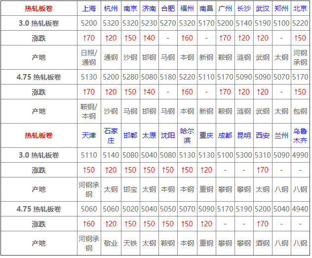 3月25日熱軋板卷價格:高位調整;