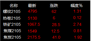 昨日黑色商品期貨全線飄紅,原燃料品種漲幅居前。鐵礦石2105合約大幅走強(qiáng),午收1067.5漲2.74%。期螺2105合約高開震蕩,午收4795漲1.31%;期卷2105合約高開震蕩,午收5130漲0.12%。焦煤2105合約震蕩走強(qiáng),午收1549漲0.8199%;焦炭2105合約震蕩走強(qiáng),午收2175.5漲1.92%。唐山鋼坯昨日漲50元,今上午兩次累積漲40,現(xiàn)報4690元/噸出廠。網(wǎng)優(yōu)廢鋼統(tǒng)計25日5漲48跌,今早0漲24跌。