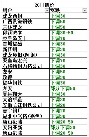 3月26日吉林建龍各料型下調(diào)50元:重型2990元,輕型2870元,公司承擔(dān)雜質(zhì),望周知!