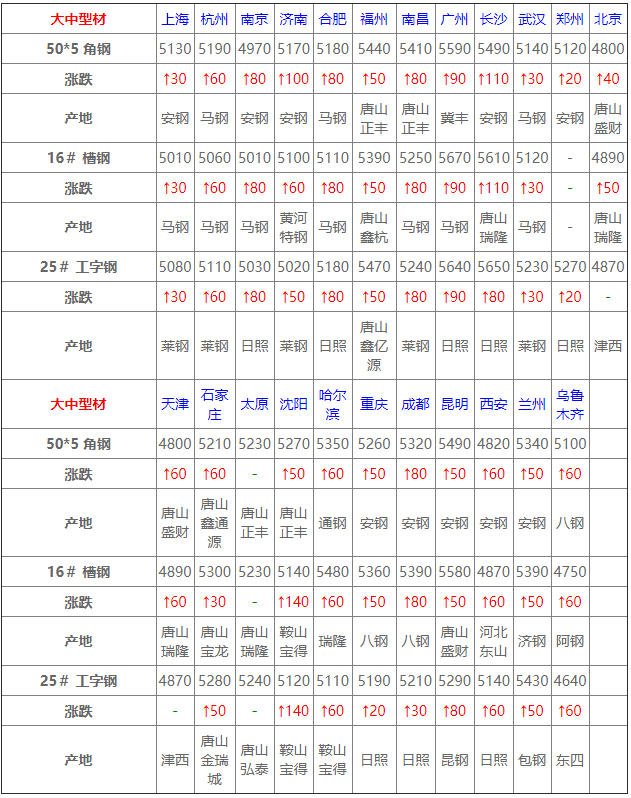 今全國中板大幅拉漲,幅度40-200元/噸,受期貨市場盤面上行影響,商家積極跟漲價格,高價位成交乏力,下游持謹慎觀望心態;預計明日仍將繼續上漲。