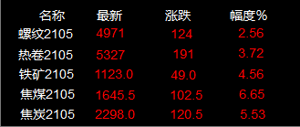 國內鋼材市場看漲氛圍較濃,鋼坯、期貨連續強勢大幅上漲,帶動鋼材現貨價格跟隨上漲。鋼材市場低庫存限制鋼價下降空間,高價格及持續升高的利率限制了鋼貿商的屯庫意愿,使得庫存累積短期較難。預計鋼材價格還有上行空間。