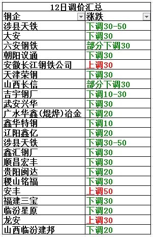 4月12日吉宇鋼廠接貨價下調10-30:鋼筋豆3340,14厚重廢3240,10厚重廢3140,混裝料3070,要求400*600,6-8厚重廢3000,要求750*400,不含稅 。