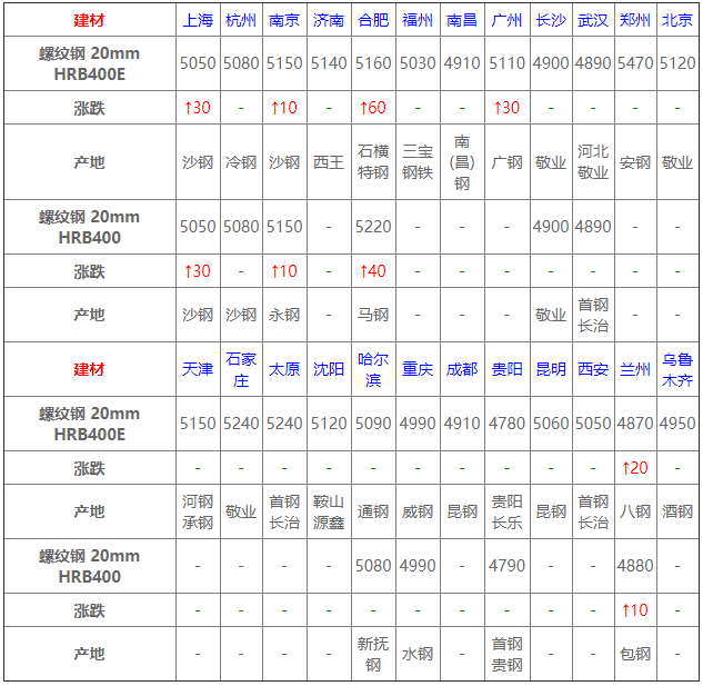 4月15日建材價格:偏強運行;