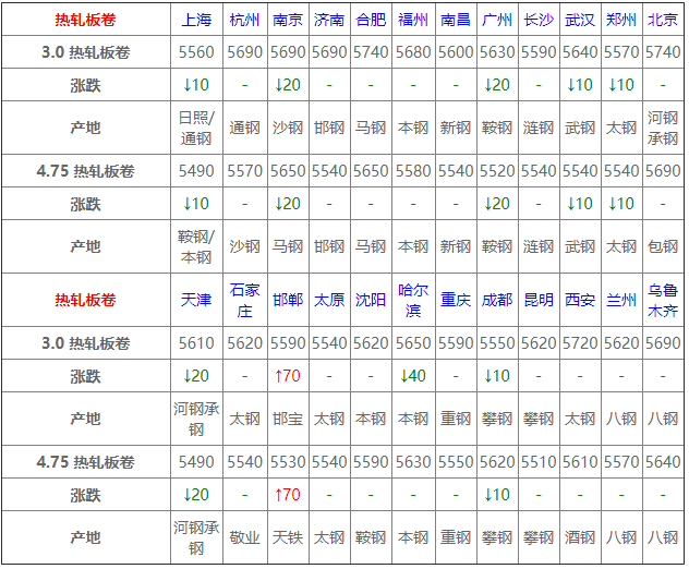 4月15日熱軋板卷價格:維穩;