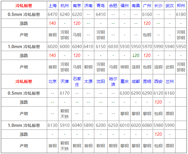 4月15日冷軋板卷價格:高位運行;