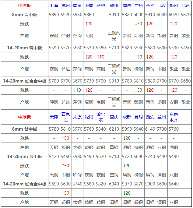今全國中板穩漲跌均現,幅度10-50元/噸,市場成交一般,早盤期螺震蕩走紅,商家情緒面尚可。