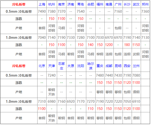 3 5月11日冷軋板卷價格:偏強運行; 今全國冷軋主流上漲,幅度70-330,市場行情波動較大,各地商家心態(tài)不一,部分商家看漲情緒明顯,存惜售心理,但仍有部分商家對市場價格存恐高心態(tài),以出貨為主,然終端對市場觀望較多,拿貨謹(jǐn)慎,整體成交氛圍一般。